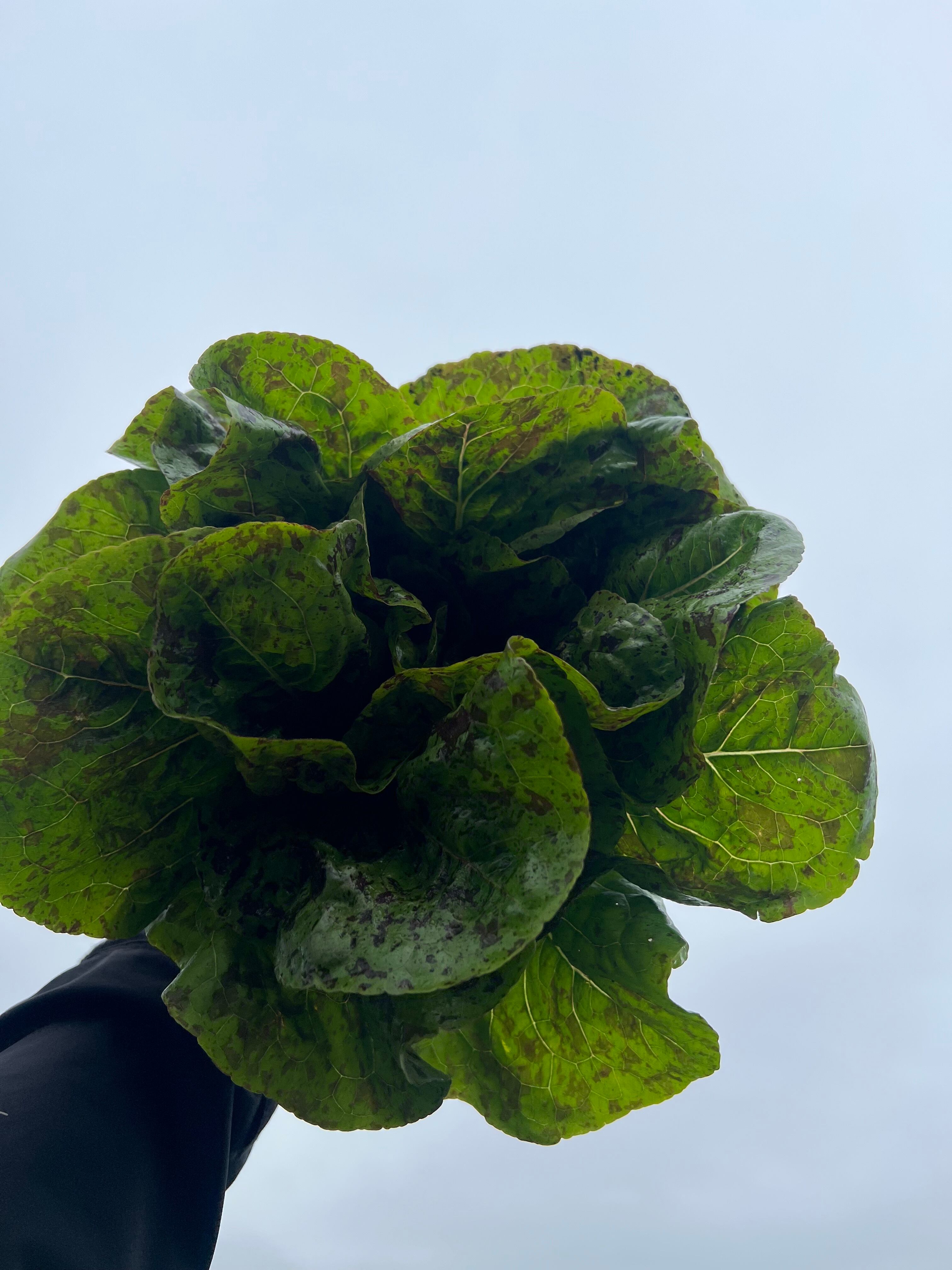フォーレレンシュロスは、鮮やかな黄緑色にワインレッドの斑点が散り、まるで“マスの背”のように美しいオーストリア伝統のレタスです。やわらかくみずみずしい食感で、苦味が少なくサラダに最適。冷涼な気候で育ちやすく、家庭菜園でも扱いやすい品種です。彩りと味わいを同時に楽しめる、特別感のあるレタスとして人気です。